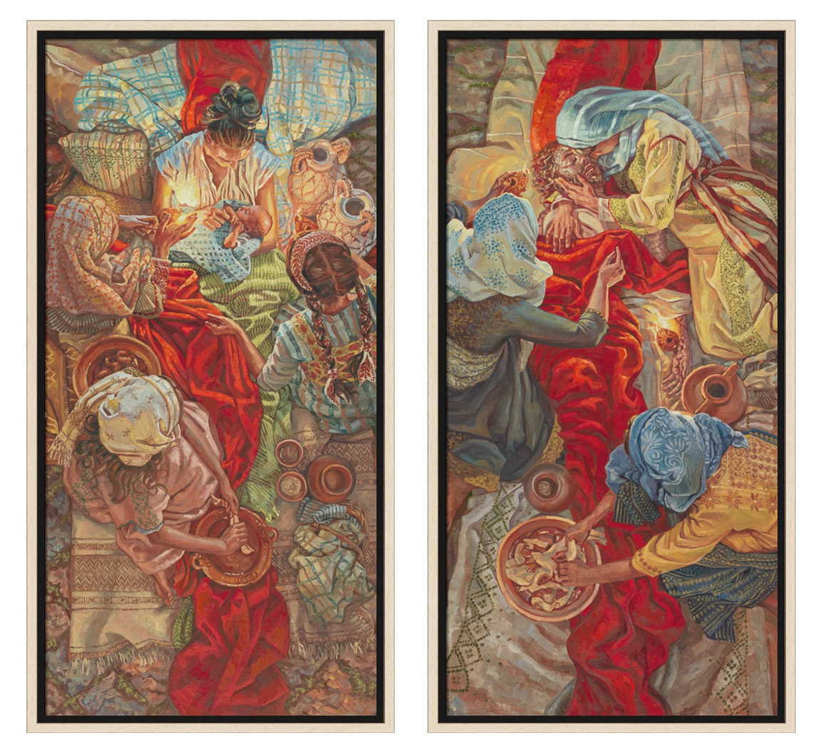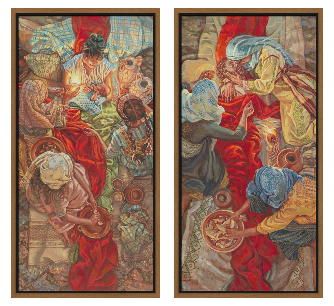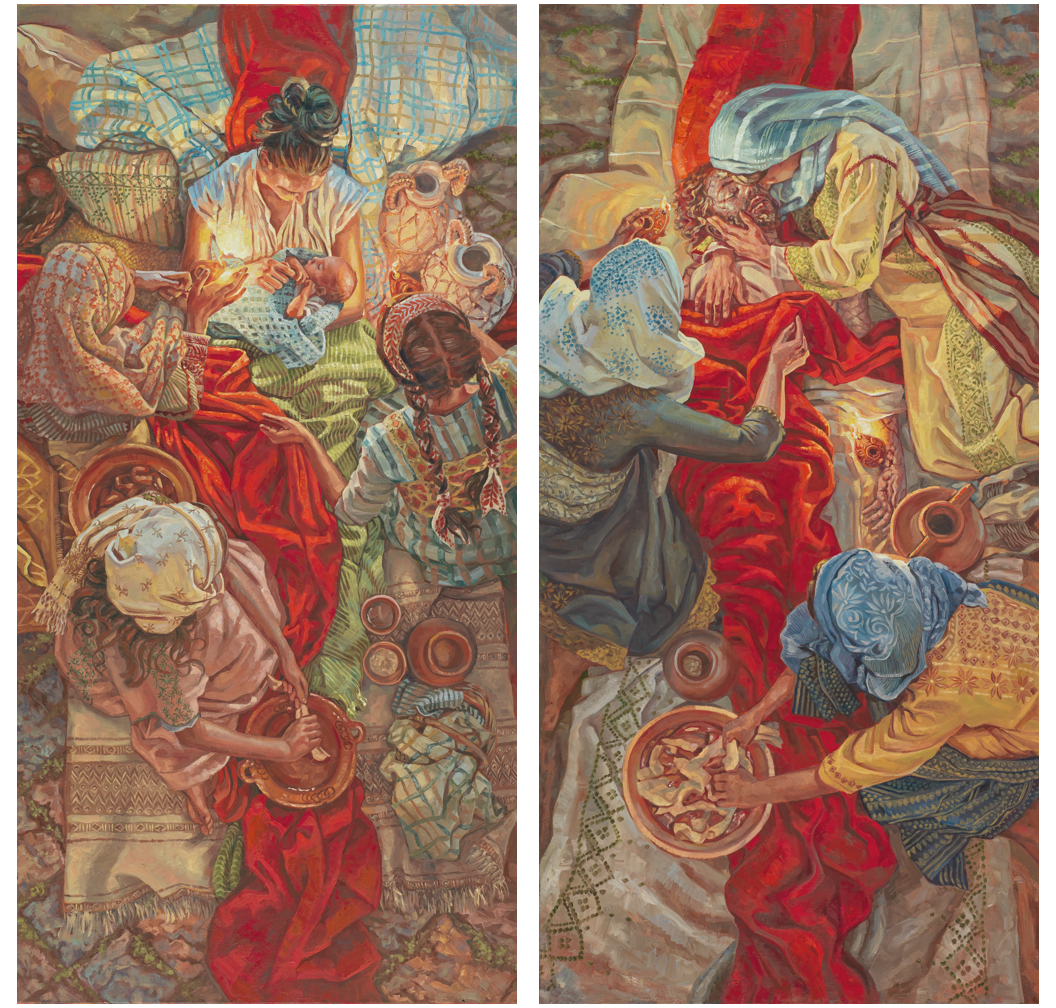 Featuring a collection of figurative artwork with colorful, effusive patterns of lush florals, vivid textiles and beautiful antique quilts
