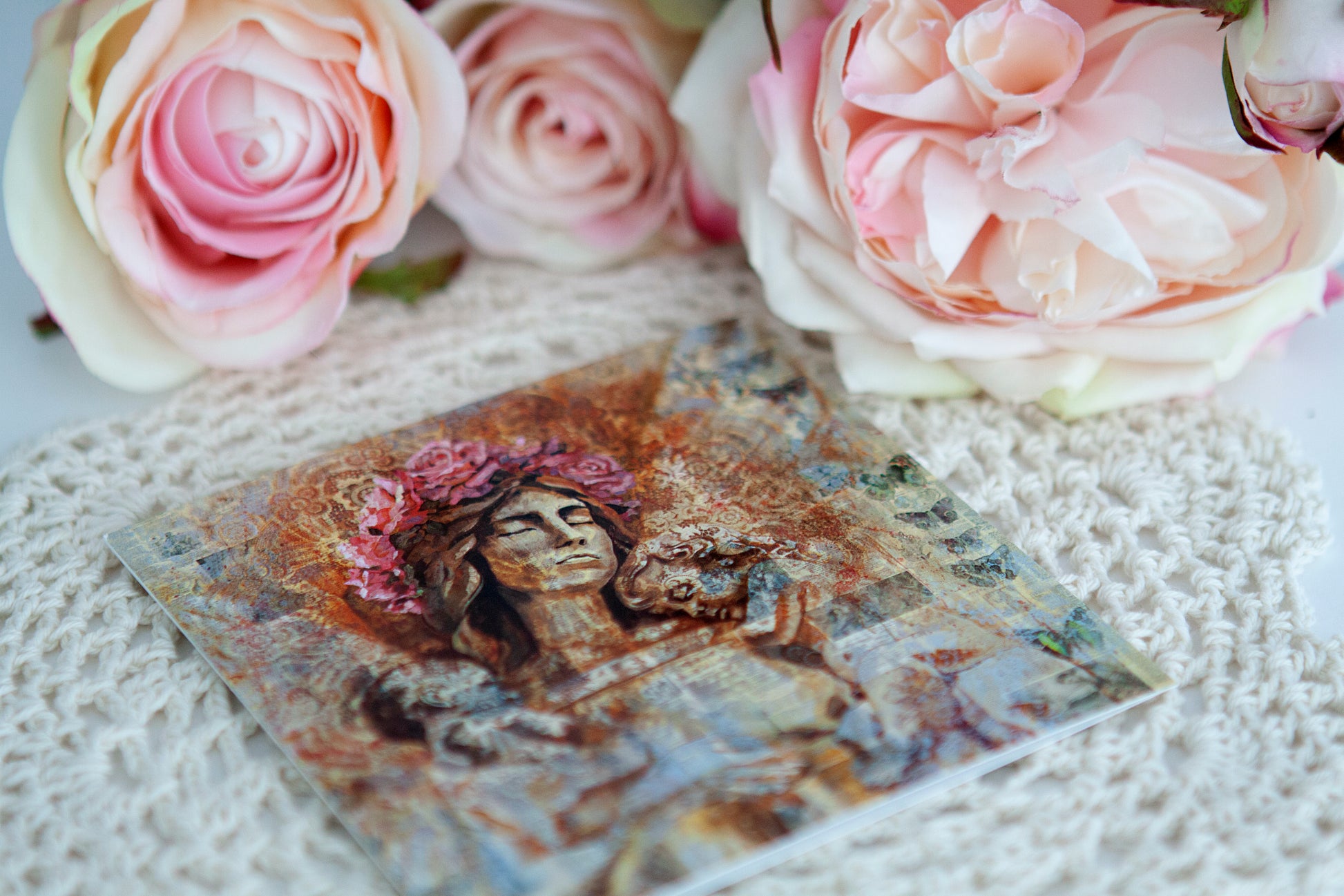 A beautiful set of 6 ~ 4"x9" Greeting/Art cards including one of each image: Divine Feminine, Help Thou Mine Unbelief, Sharing the Light of Christ, Let Earth Receive Her King, Covenant Arrangement, and Blessed Unrest. Descriptions of each image are included on the back of each card. The inside of each greeting/art card is left blank to customize your own message and send with included envelopes. A bonus 4"x4" card of Mother in Heaven is also included.