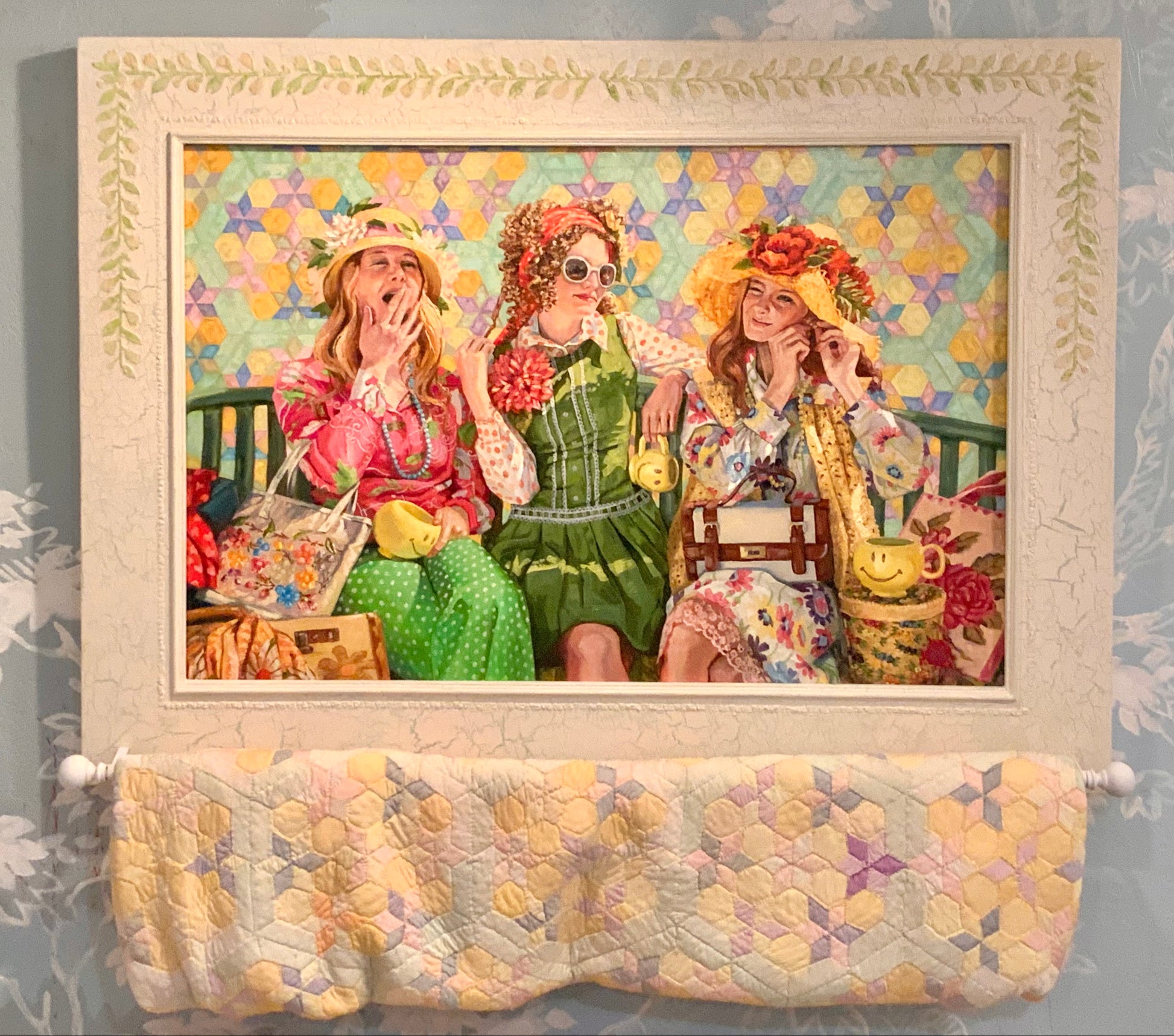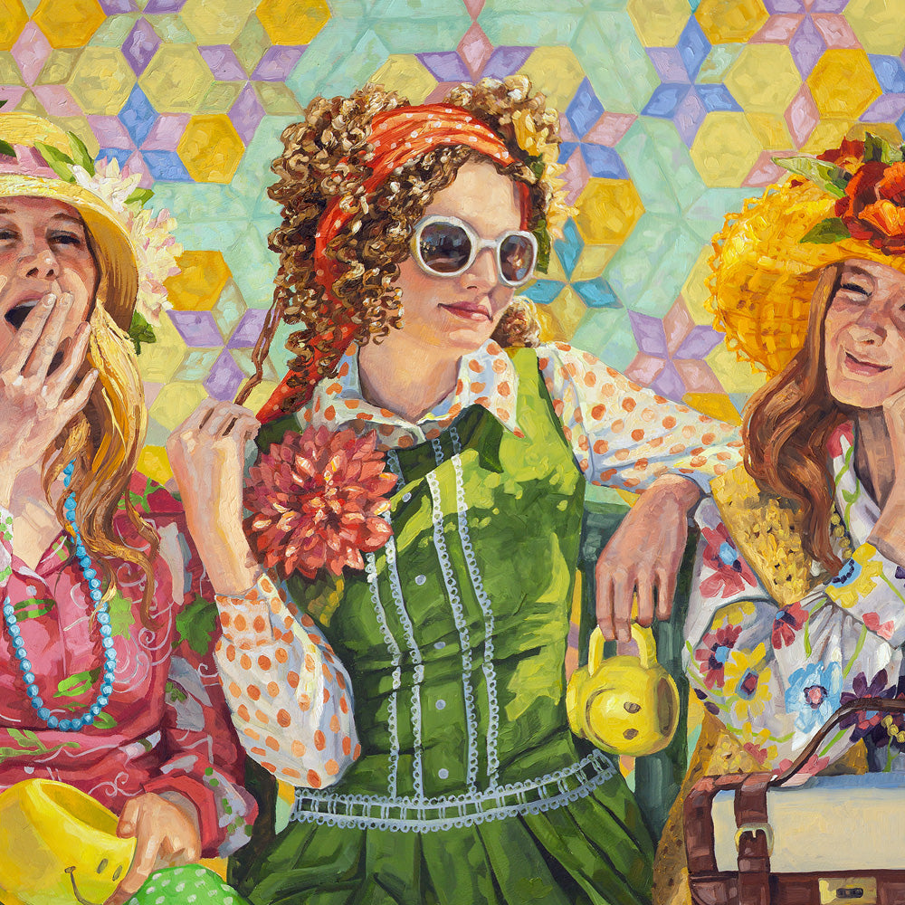 This is a fresh and effusive modern take on the traditional monkey motif! The girls are surrounded by colorful baggage that somehow reminds us to follow this moral axiom while at the same time not taking ourselves too seriously.