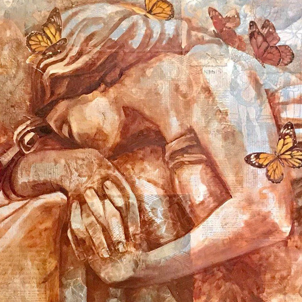 The effervescent butterflies contrast nicely with the monumental figure, and remind us that growth, change and metamorphosis are essential for progress.