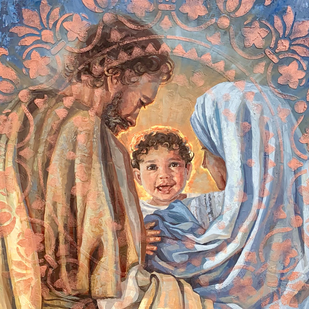 The idea for this image came to me when I was sitting in the pews in church. Several rows ahead of me a small child caught my eyes and beamed such a pure and innocent countenance. It made me wonder what it must have been like to see the Christ child and perhaps interact with the holy family.
